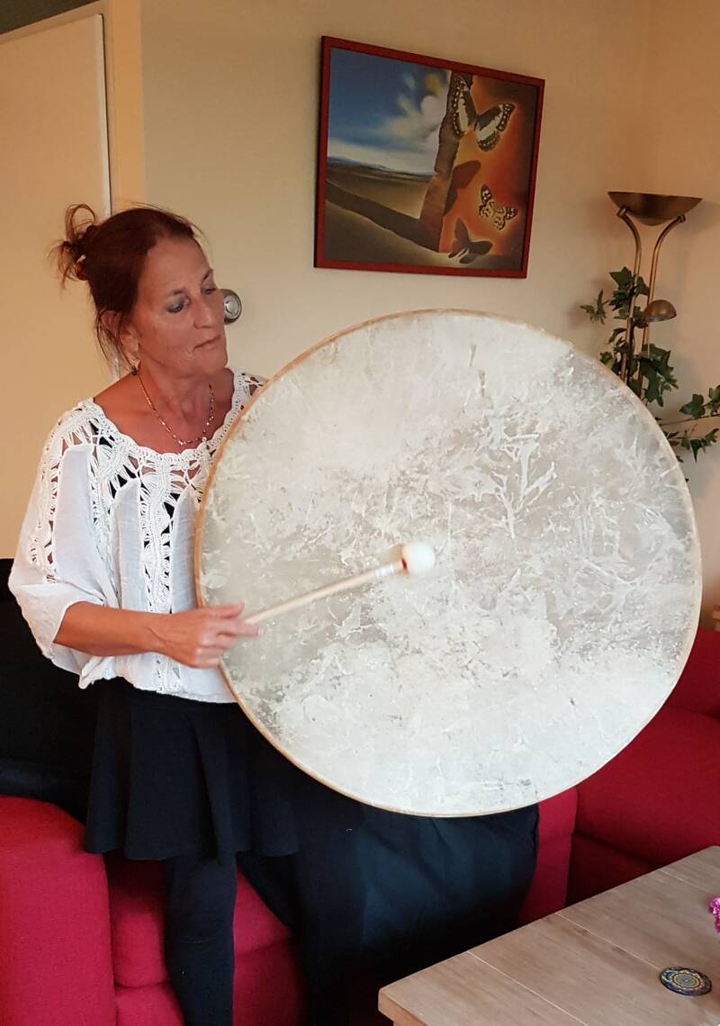 Met de gong drum geef ik met zijn mooie diepe donkere klanken en trillingen het hartritme aan,